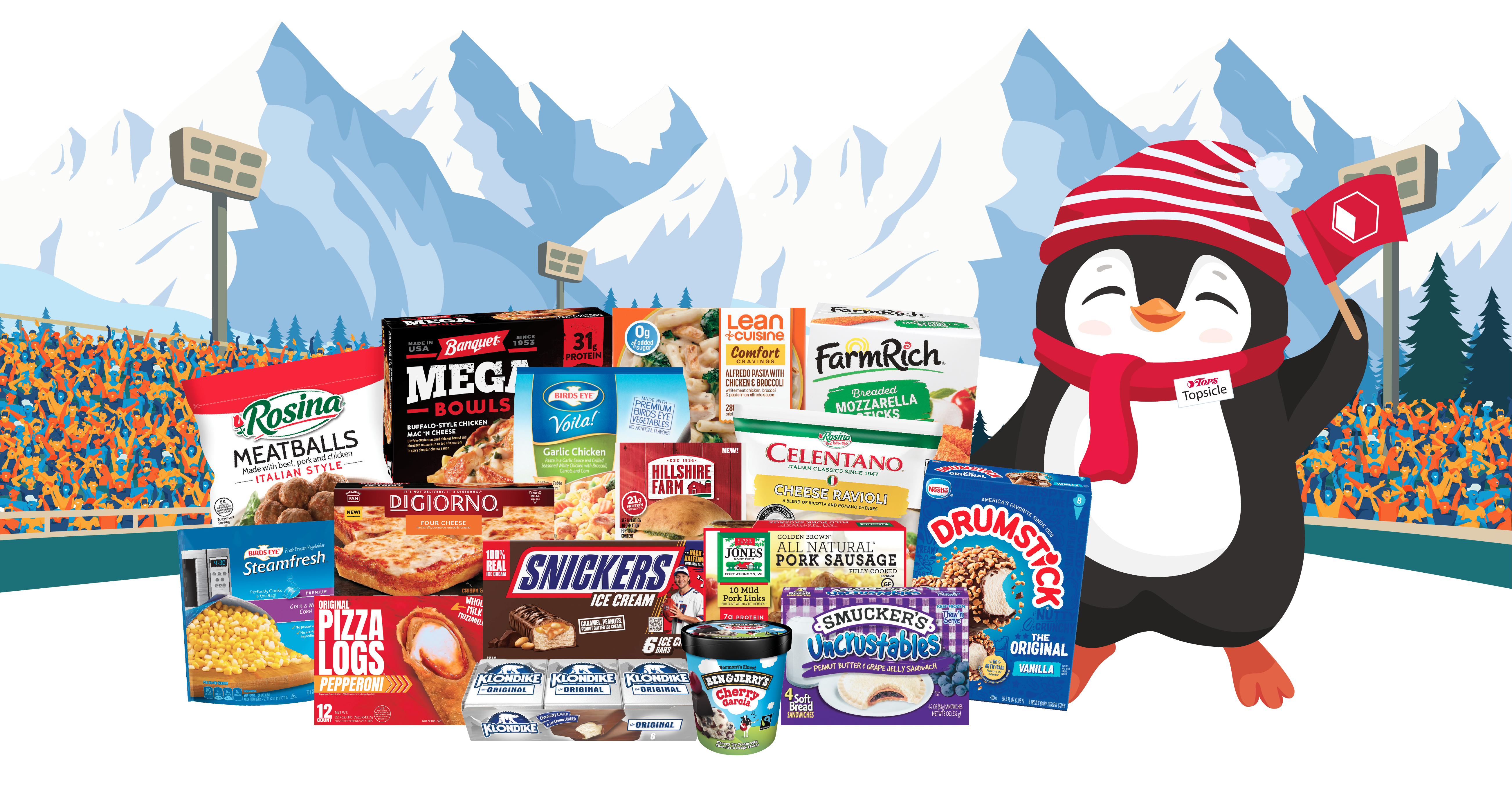 Participating Brands: Banquet, Ben & Jerry's, Birds Eye, Celentano, DiGiorno, Drumstick, Farm Rich, Hillshire, Jones, Klondike, Lean Cuisine, Mars Ice Cream Bars, Original Logs, Rosina, and Uncrustables.